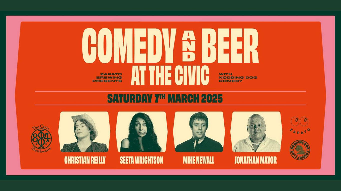 | Zapato Presents Comedy + Beer At The Civic | Sat, 7.3.2026 18:30 - 23:00 | After two ridiculously funny sell-out comedy nights last year, Zapato Brewing is bringing the laughs back for a third time with Comedy + Beers at The ... Read more |