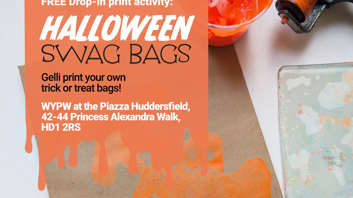 | Print your own Halloween Swag Bags - Printmaking Family drop in at West Yorkshire Print Workshop | Thu, 30.10.2025 11:00 - 14:00 | Join us at the Creative Piazza as we celebrate the spooky season and Gelli print spooky swag bags for your trick or treating goodies. Thursday 30th Oc ... Read more |