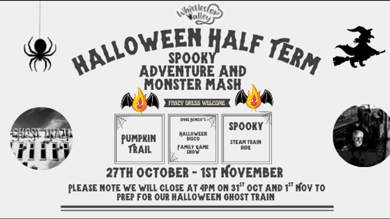 | |  | Halloween Half Term | Mon, 27.10.2025 10:00 - 17:00 | +5 | 27th October 2025 - 1st November 2025 We will be open for October Half Term for spooky activities including pumpkin trail, Halloween disco & family g ... Read more |